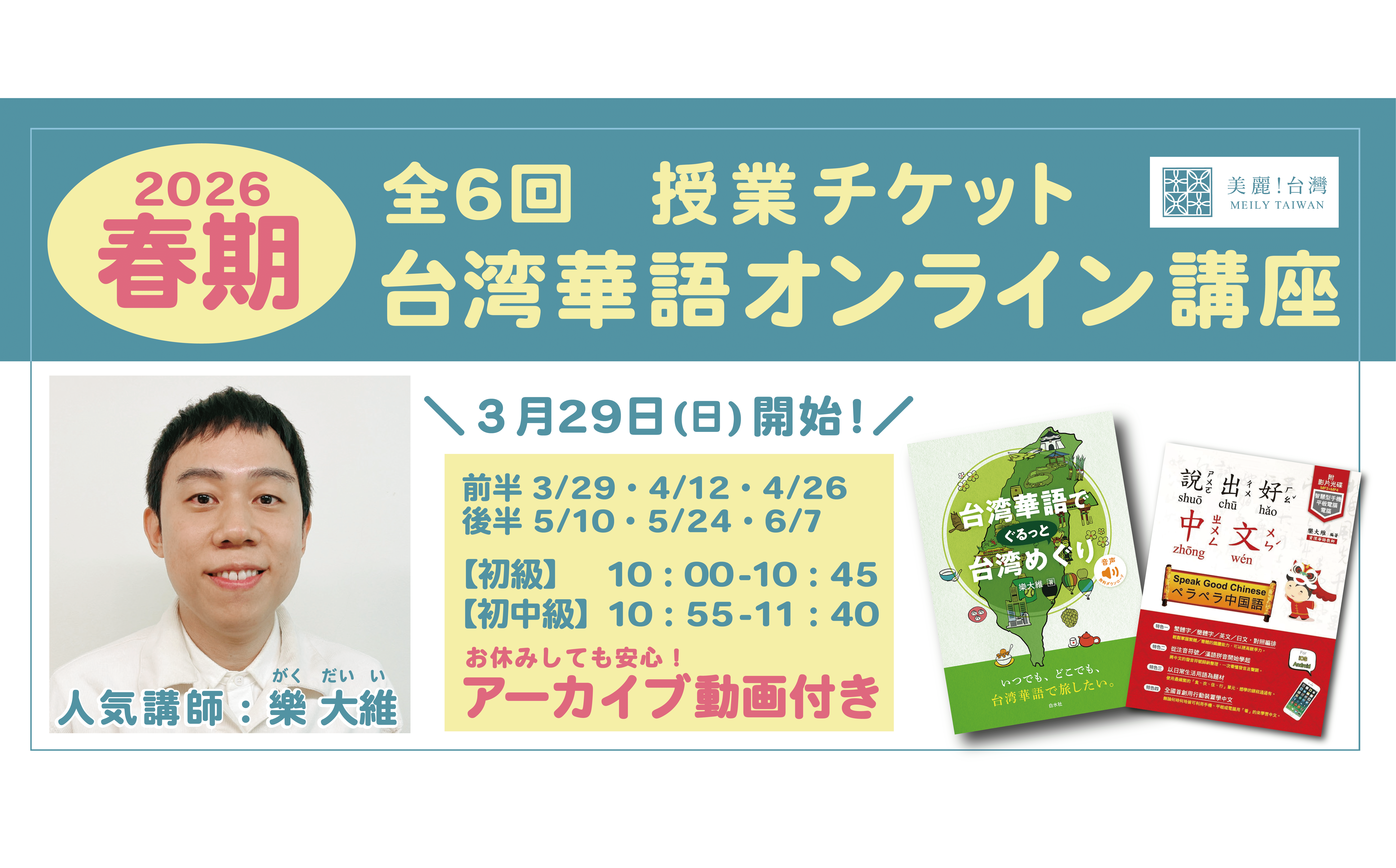 イベントをさがす【3月9日(日)開講】台湾華語オンライン教室 春期(講師:樂大維)全6回- 大人の習い事教室