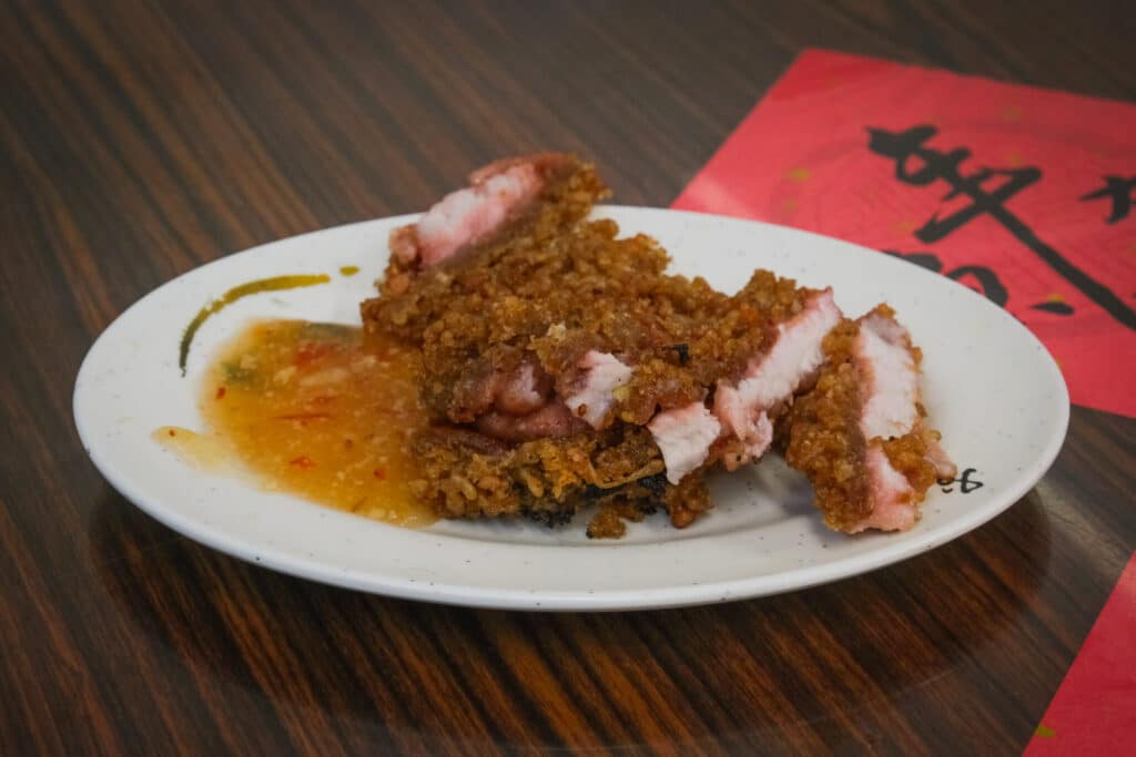 有名なグルメの一つが紅糟肉(ホンザオロウ)。紅麹に漬けた豚肉をカリッと揚げた料理です。ほんのりとした甘い香りやきれいな赤色の衣が食欲をそそります。