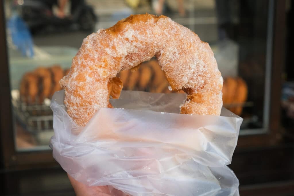 老街から一本先の大通りへ、延平一路にお店を構える「旗山包子舖」。包子(肉まんやあんまん)、饅頭(中華風蒸しパン)を販売するお店ですが、甜甜圈(ドーナツ)も人気商品の一つです。営業開始の14時頃には多くの人で賑わい、夕方ごろには売り切れということも。カリカリとした生地と粉砂糖がザクザクとした食感の、台湾らしい一品です。