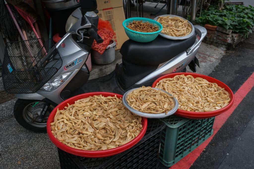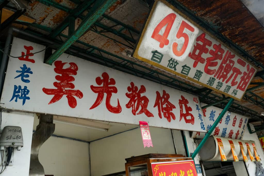 中でも有名なのが、「粄條(バンティアオ)」。米粉から作られた平たい麺で、炒めたものやスープなど、食べ方はさまざまです。街を歩いていると「粄條」と書かれた看板をたくさん見かけます。