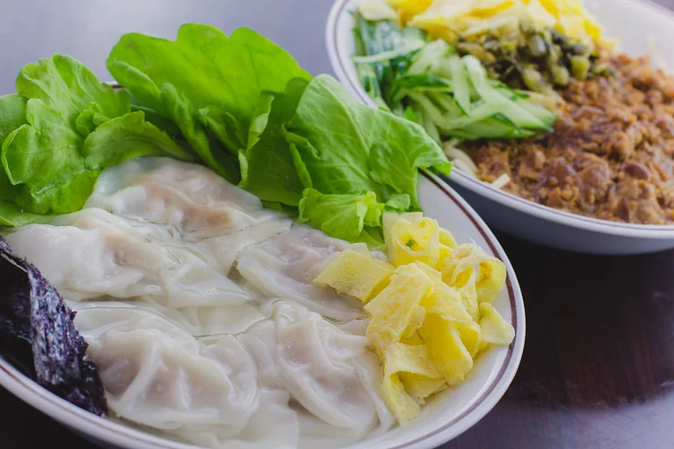 創業50年以上のこのお店の看板メニューはワンタンスープです。薄いながらも弾力ある皮が特徴で、ほうれん草や海苔がアクセントとなっています。