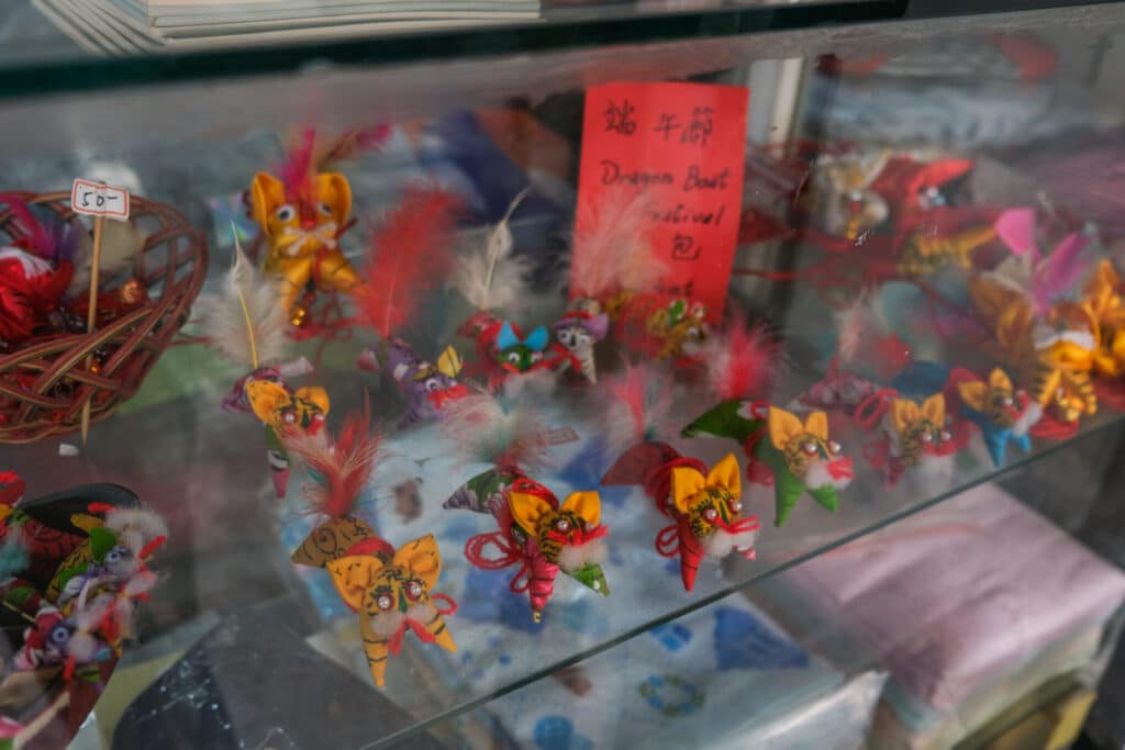 台湾では、毎年旧暦の5月5日端午節の時に「香包(シャンバオ)」を身につけて、病気や邪気を払うという風習があります。布の袋によもぎや陳皮などの薬草を入れたお守りです。ちまきの形をした伝統的なものからキャラクターデザインのものまで、さまざまな種類があります。