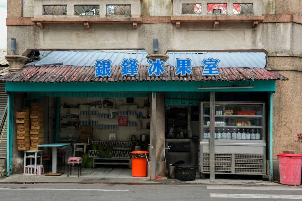 鹽水で70年以上もの歴史を誇る、かき氷やフルーツジュースのお店「銀鋒冰果室」。1951年の創業以来、地元の方から観光客まで多くの人で賑わっています。バス停や「鹽水八角楼」のすぐそばにあり、店内で一休みをするのも、テイクアウトをして公園までお散歩するのもぴったりです。