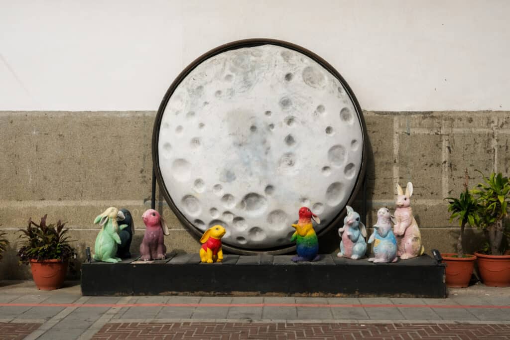 鹽水八角楼のすぐ近くには、「月之美術館」があります。台南市政府は2004年から、かつて繁栄した月津港の歴史ある街並みを活かしながら整備していく取り組み「月津風華再現計畫」を開始しました。この一環として始まったのが「月津港燈節(月津港ランタンフェスティバル)」です。芸術活動はますます盛んになり、2019年に月之美術館が開館しました。