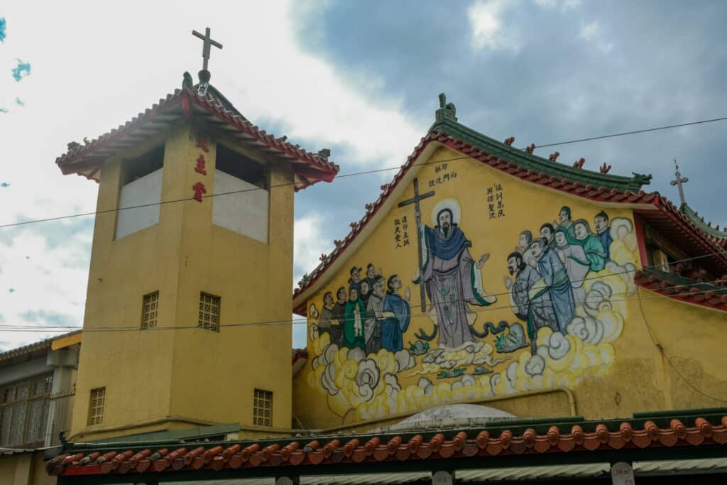 月津港の近くに位置する「鹽水天主聖神堂」。廟のように見えますが、カトリックの教会です。