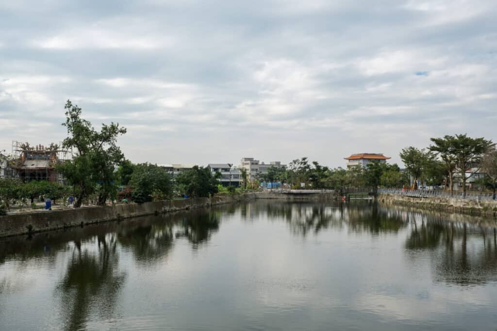 中正路と川が交わるあたりは「月津港」と呼ばれ、かつては川と海を繋ぐ港として機能していました。現在、川の周辺は公園として整備されています。水面と緑の交わる景色はとても美しく、毎年旧正月期間にはランタンフェスティバルの会場として賑わう場所です。