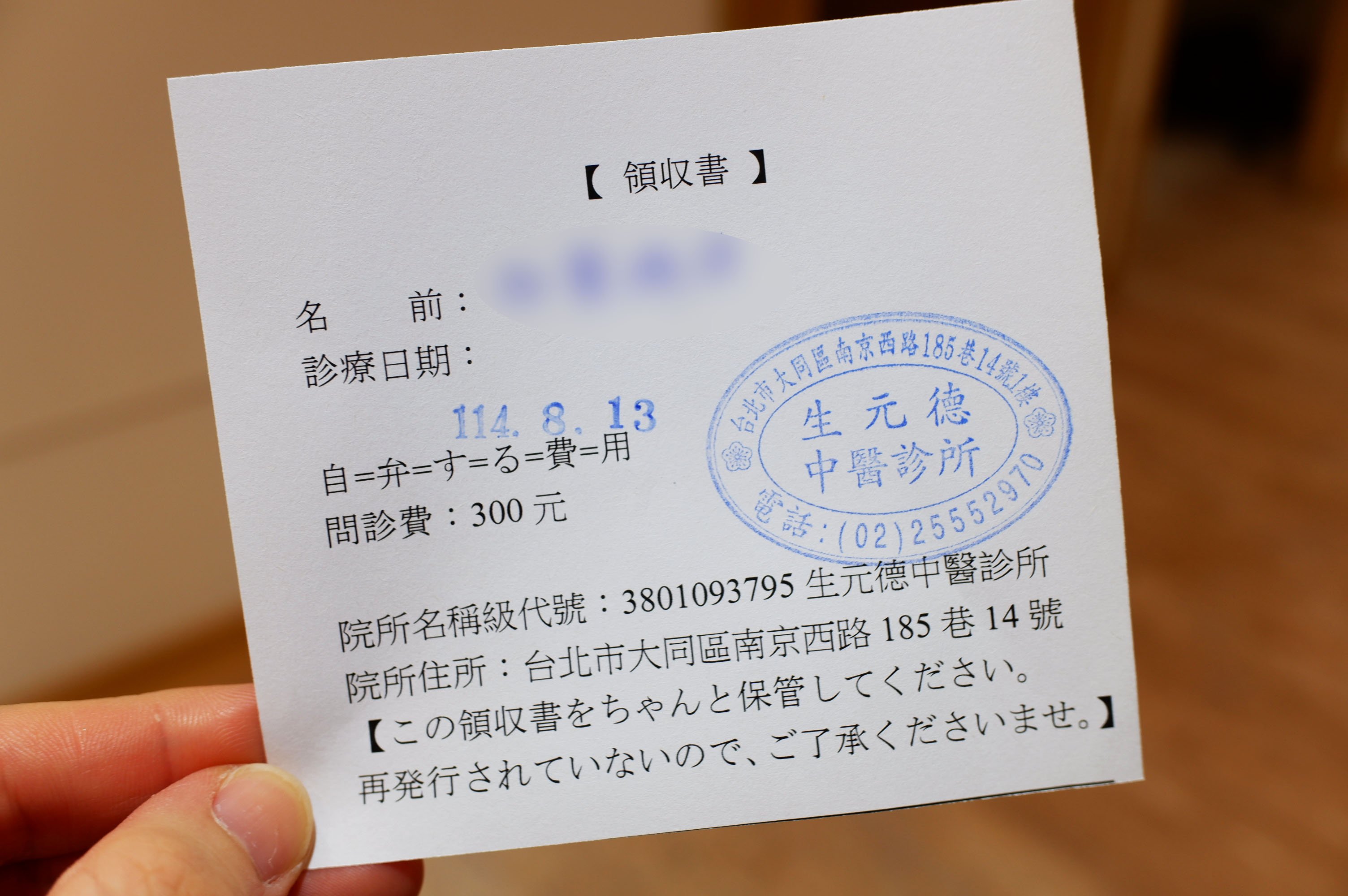 診療代は一律300元で、漢方代は処方される漢方の種類によって値段が変わりますが、だいたい約2週間分で1500~2000元ほどになると事前に案内がありました。